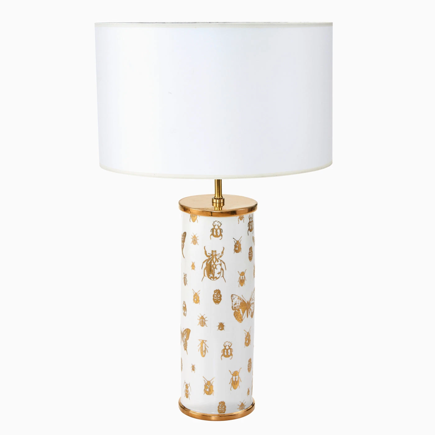 Featuring glossy white porcelain wrapped in shimmering gold silhouettes, our Botanist Table Lamp is a sparkling spot of boho-glam. Its large scale and classic minimalist form is a natural on your desk and a grand addition to any elegant entryway console.