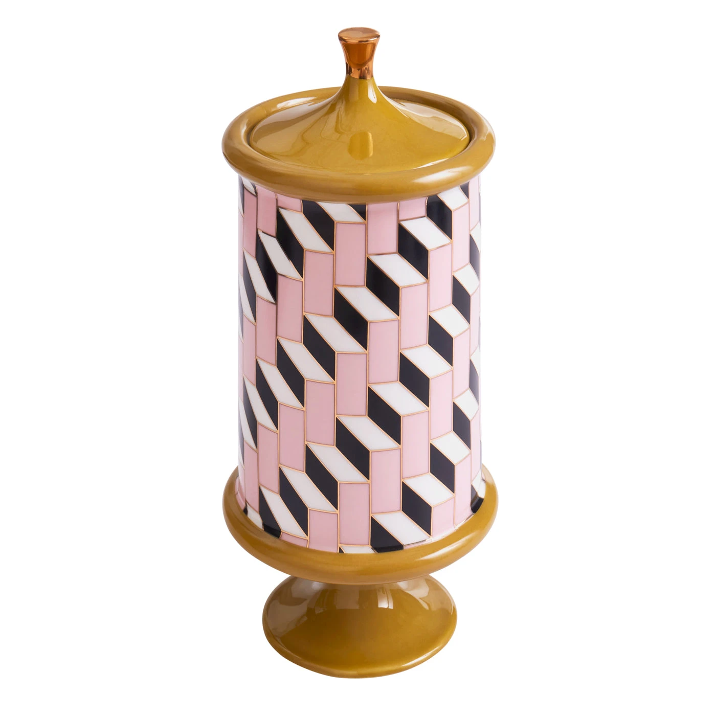 Featuring moody Colosseum-inspired curves and colors, our Arcade Canisters reimagine an iconic architectural motif in haute couture porcelain accented with real sparkly gold. Stash your secrets with real Roman form.