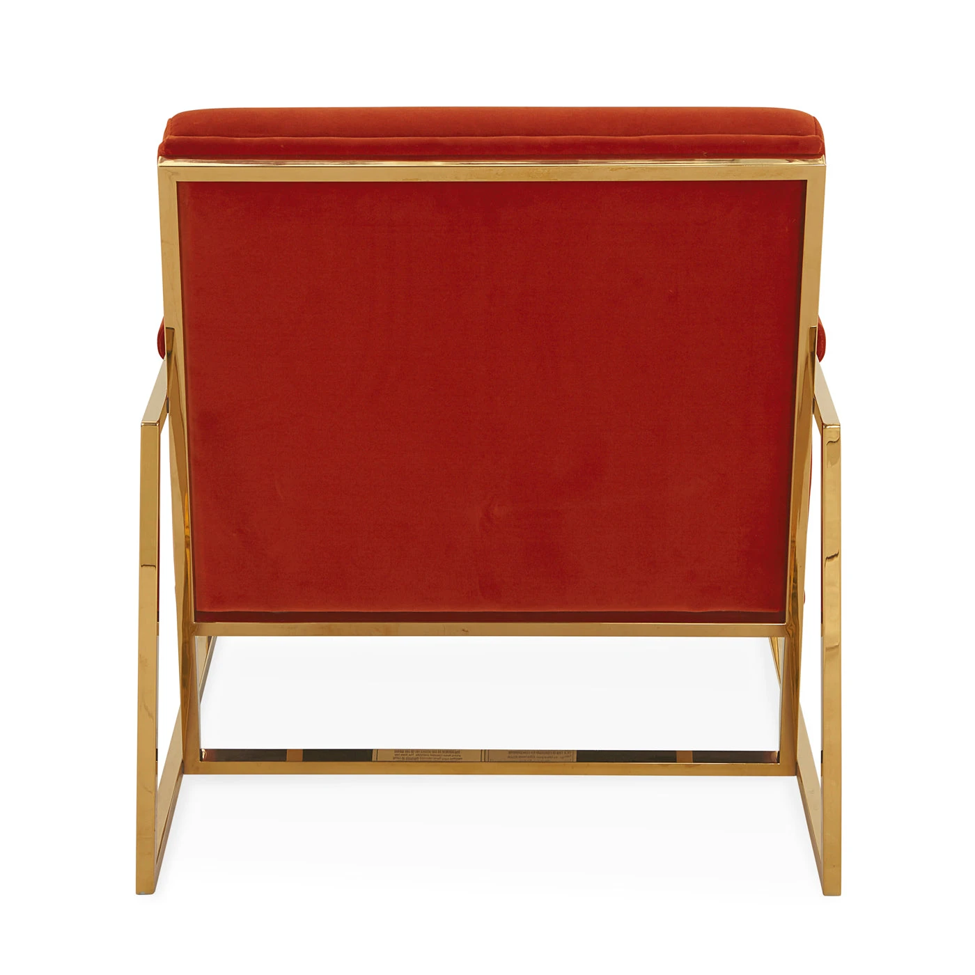 Minimalist comfort gets a modernist makeover—we’ve taken our definition of leaned-back luxury to the next level with our Channeled Goldfinger Lounge Chair. Ultra-comfy channeled cushions and plush arm rests complement its perfect pitch on a pared down, polished brass frame. A bold burnt orange velvet turns up the glam, alternating blues feel seaside chic, or a fresh textural finish takes neutral to the next level.