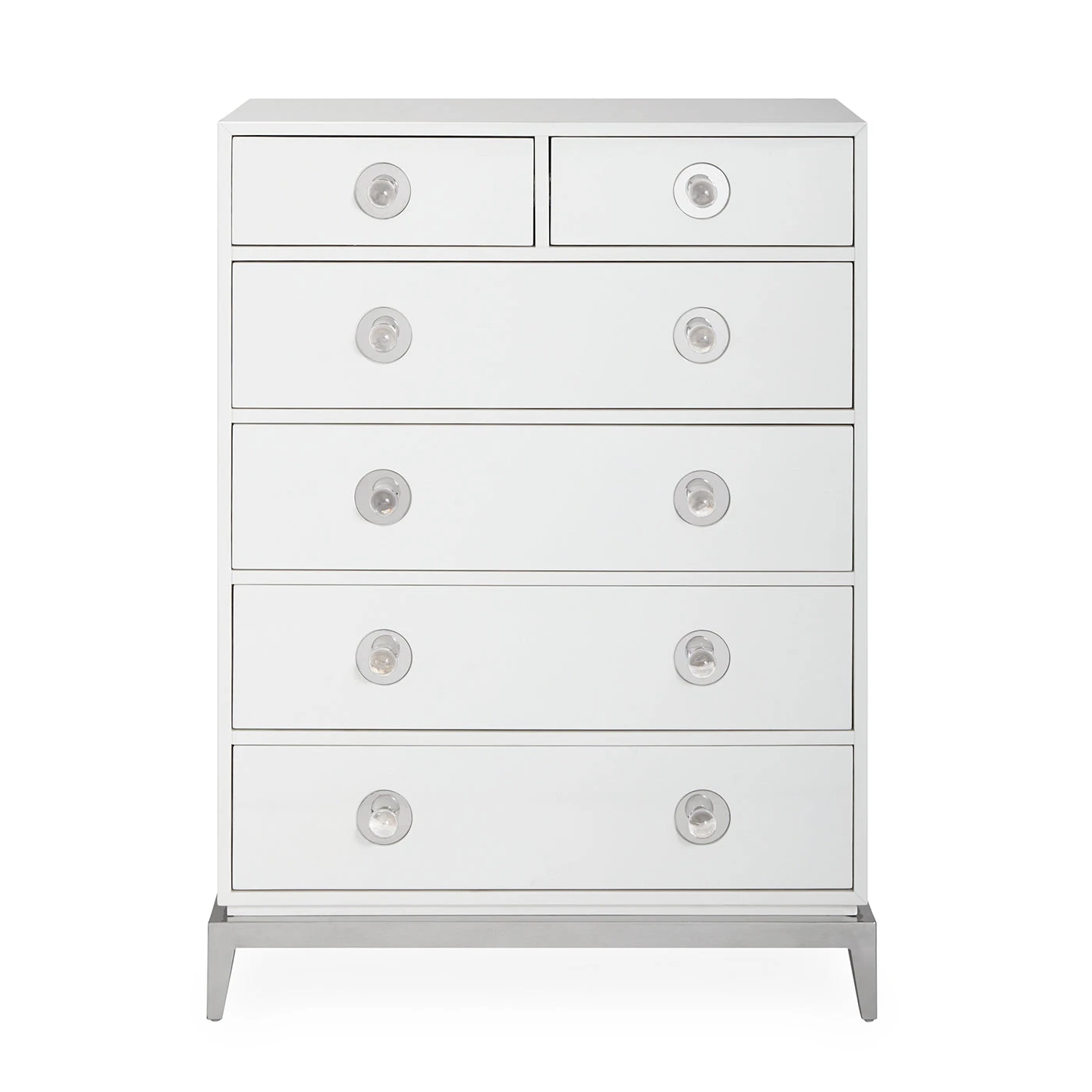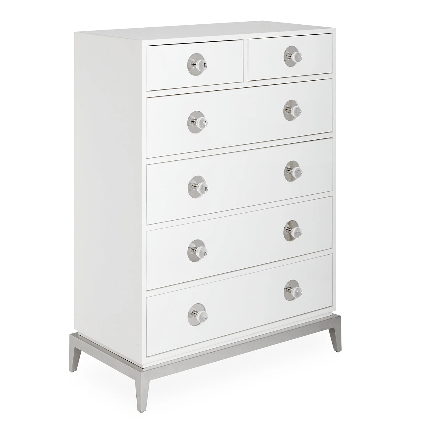 Neo-Classical lines, a dash of Hollywood glamour, and a top note of Mod moxie: that’s our Channing Collection. Stash your stuff like a starlet in four generous drawers topped with two for your extras. Finished in glossy lacquer and featuring polished nickel accents with oversized acrylic knobs.
