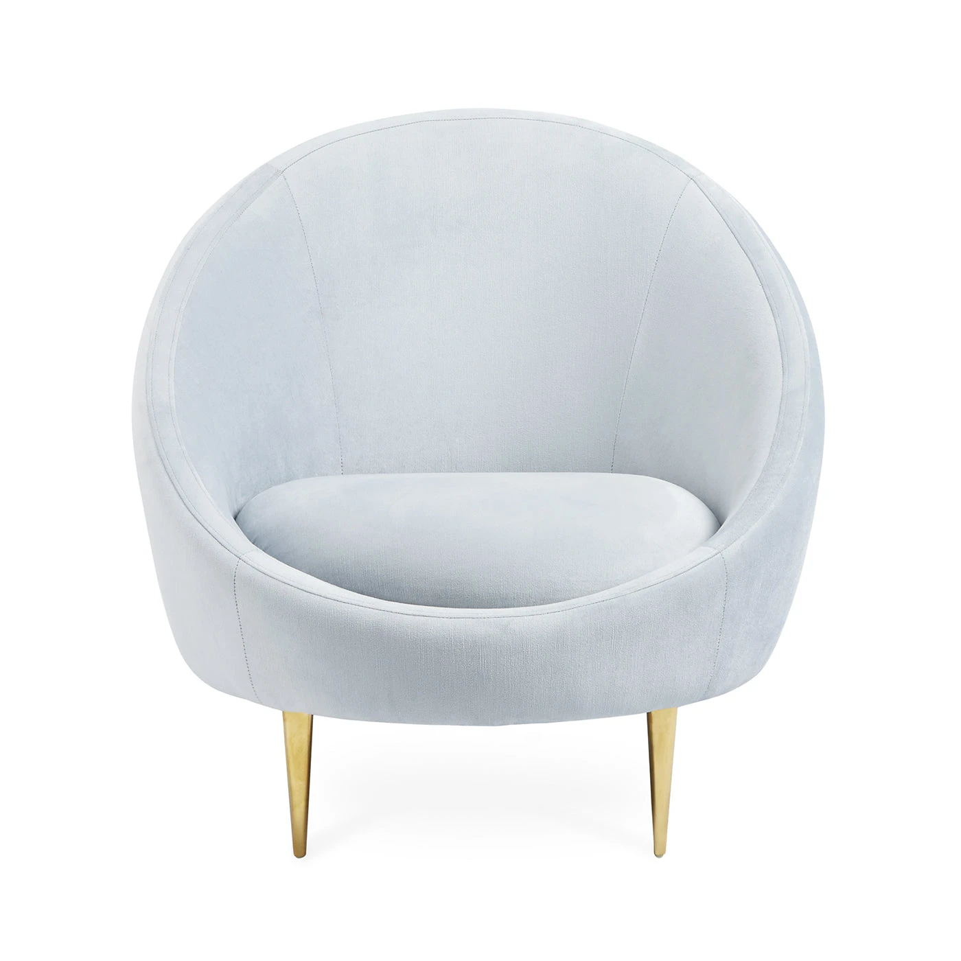 Our sleek Ether Chair packs a powerful punch. The Minimalist gesture of the capsule-inspired silhouette provides surprising comfort, while gleaming brass stiletto legs add lift and polish fit for a formal parlor. Elegant and exceptionally hardworking velvets—an airy, icy blue, or posh pale lavender—finishes off the fabulousness, or create a haute hygge moment with super-luxurious shearling.
