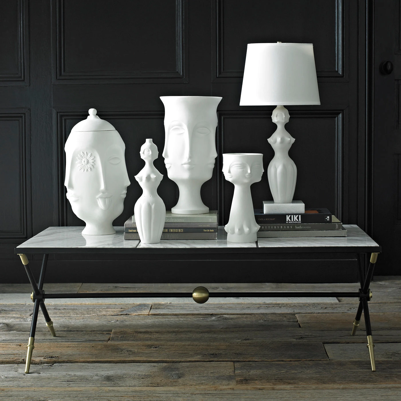 Jonathan throws the models for the Muse vessels and then substitutes our signature geometric relief patterns with body parts—faces, breasts, lips—to create a surreal style. Each piece is made from unglazed matte porcelain to accentuate the forms and is inspired by our favorite artists’ muses.