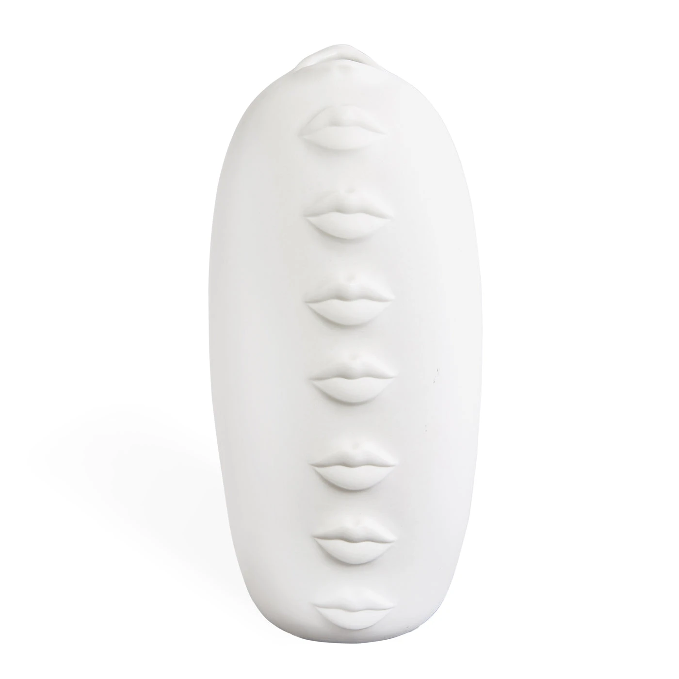 Jonathan throws the models for the Muse vessels and then substitutes our signature geometric relief patterns with body parts—faces, breasts, lips—to create a surreal style. Each piece is made from unglazed matte porcelain to accentuate the forms and is inspired by our favorite artists’ muses.