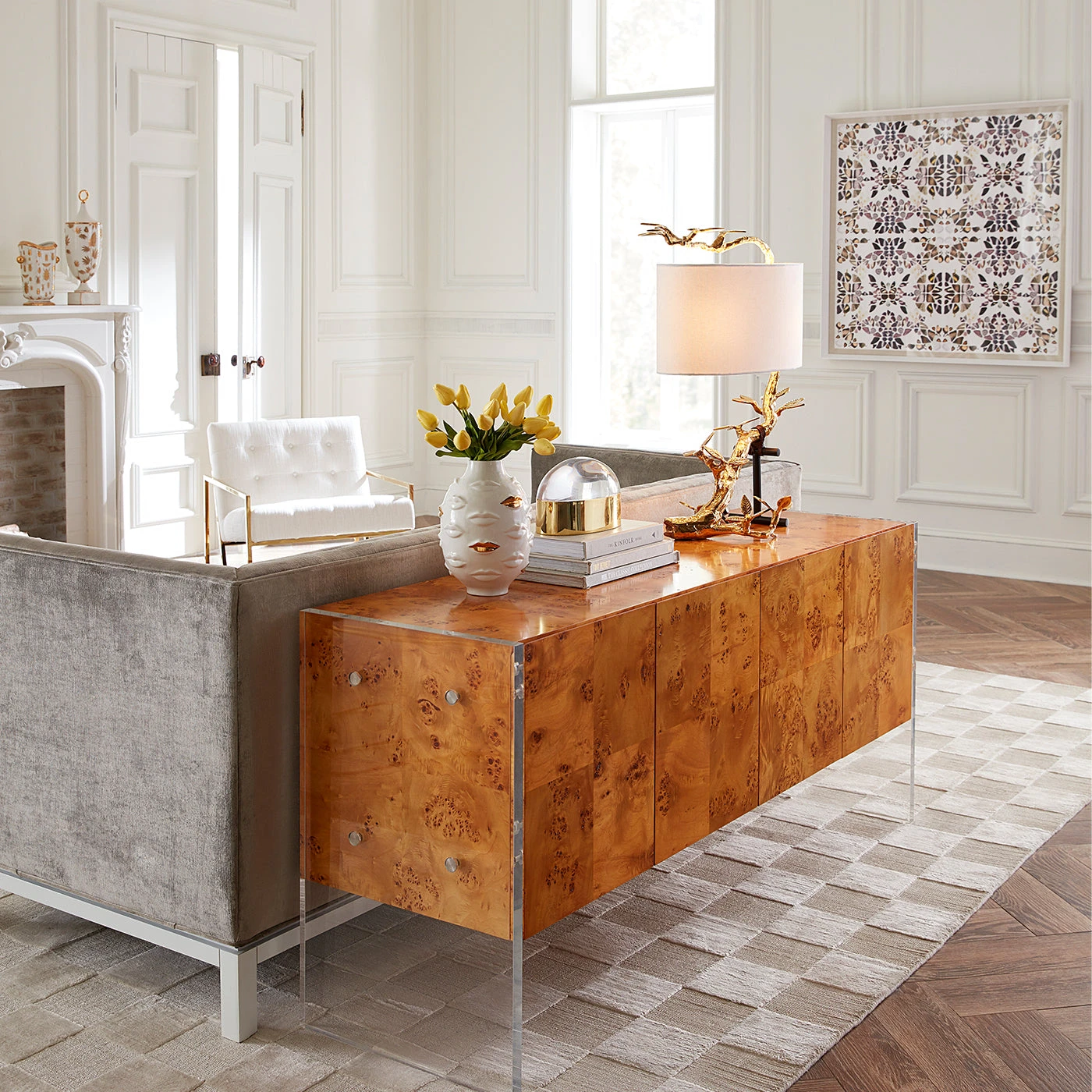 Float into our world of dreamy orbs and cabochons. Its polished brass base topped with a luminous clear or jewel toned acrylic lid, our Globo Box imparts high-voltage glamour on any tabletop, powder room counter, or cocktail table. Glowing gems on their own and even more intriguing when styled together. Available in three sizes.