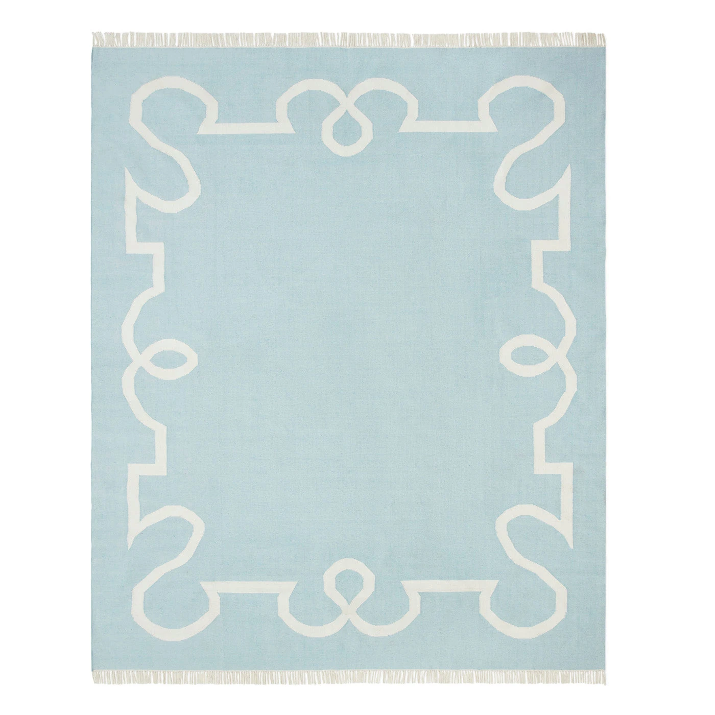 Keep style afoot with our collection of reversible, easy-to-clean indoor/outdoor rugs. Our signature Maxime border elevates fresh sky blue and ivory – the perfect pick for channeling a preppy Palm Beach patio. Pair with our bright and washable outdoor pillows and keep it cool from backyard to beachside.