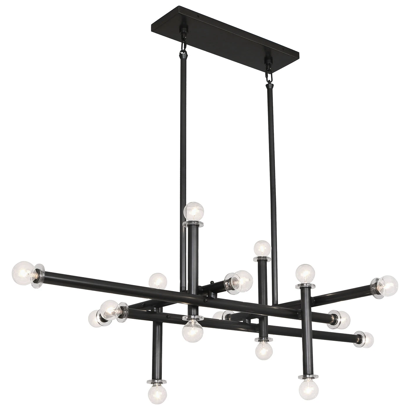 Our architectural Milano Linear Chandelier wows the room with its balanced composition, large scale and stately presence. Double down on industrial chic with a deep patina bronze finish, or turn up some extra twinkle with polished nickel or brass.