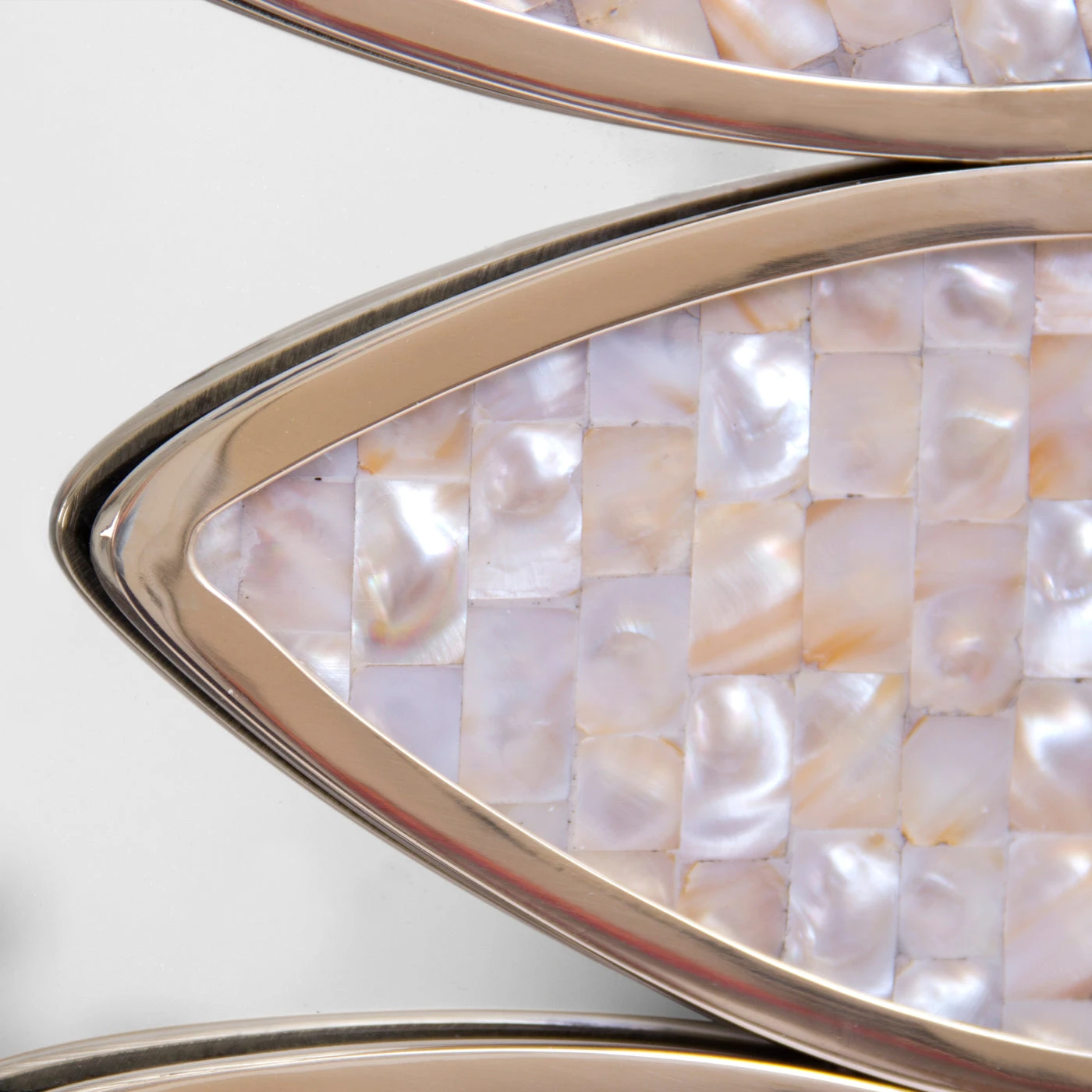 Sought after for its iridescent surface, mother of pearl offers a unique collage of colors often used in fine jewelry. Cut in thin pieces and set in polished brass petals, the mother of pearl in our Petal Mirror radiates a warm natural glow. It’s twinkly-chic jewelry for your home.