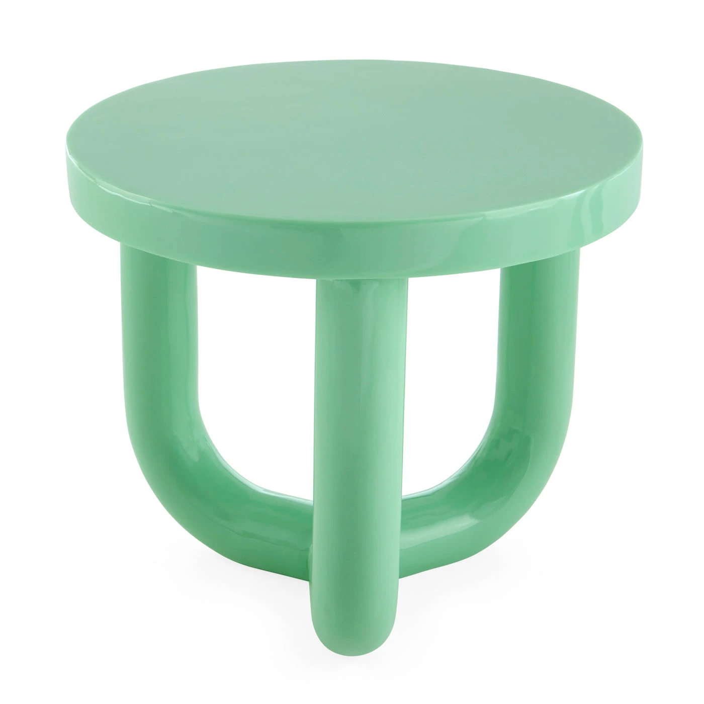 Crafted from solid opaque celadon acrylic, our Pompidou Accent Table’s chunky, 70s inspired base and thick circular tabletop is intriguingly luminous. A mod end or drinks table that pops against ivory and oatmeal toned upholsteries.