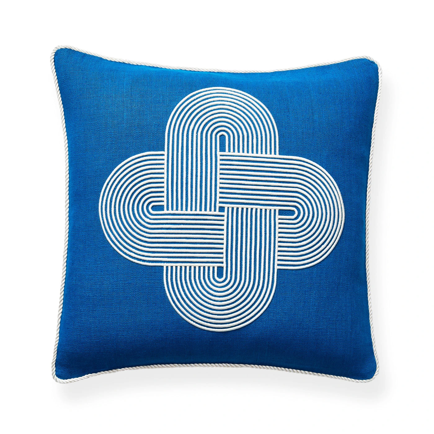 Our Pompidou pillows pair 70s inspired patterns with daring dimension for added oomph. Featuring bold, saturated primary colored linen or muted and moody toned linen embellished with a raised satin stitch and a corded edge. Group them for a strong statement, or pop one wherever your room needs a boost.