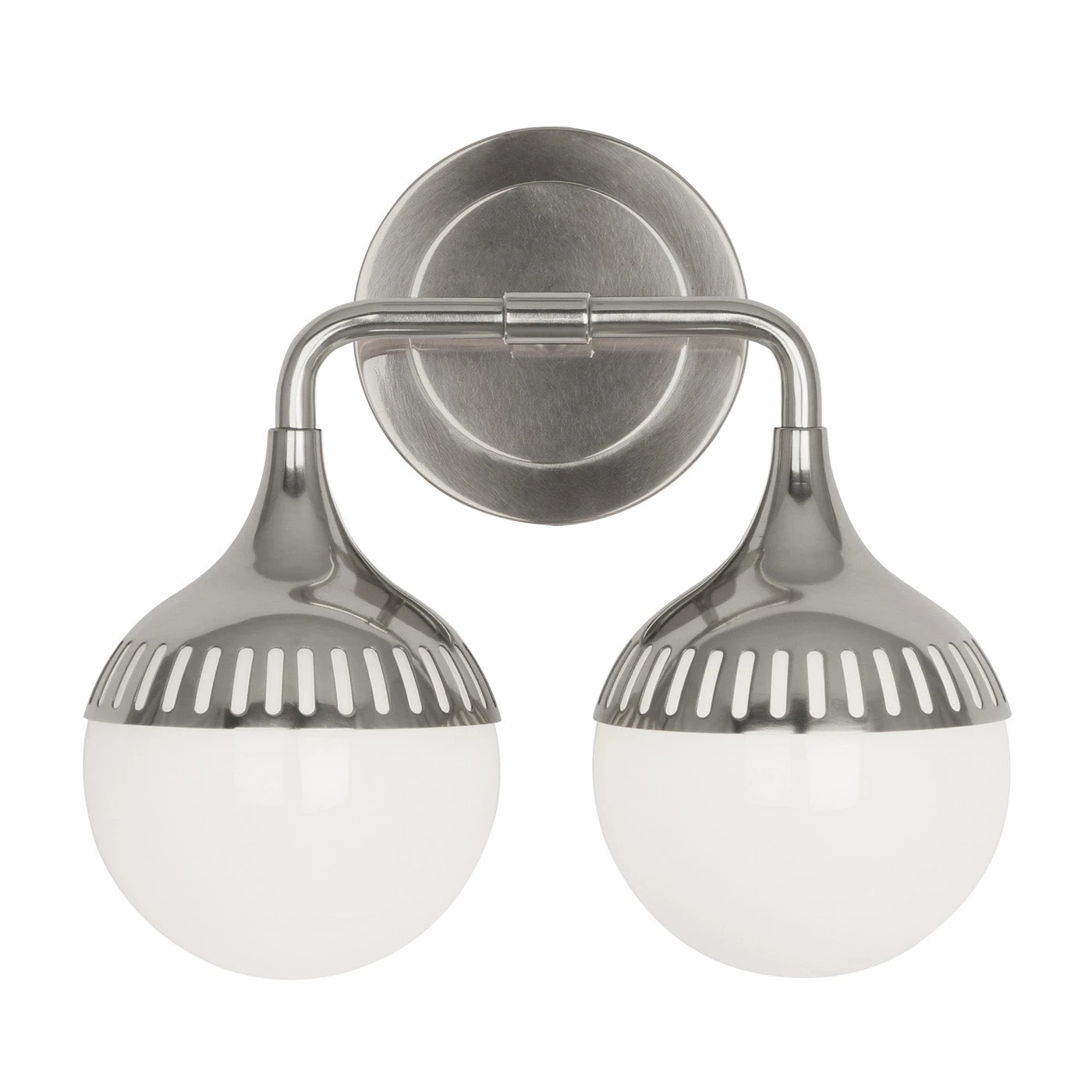 Add a dash of mid-century magic or a flash of futuristic glam with our Rio Two-Light Sconce. Two elongated silhouettes resemble droplets of water, while curved shades featuring laser-cut detailing adds architectural oomph. Go for moody glamour with antique brass or twinkly chic with polished nickel. Mount horizontally or vertically.