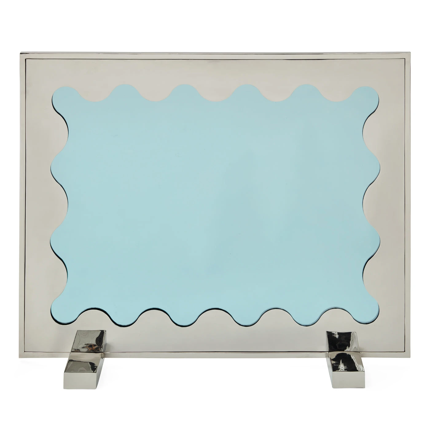 A simple and modern face for your fireplace, our Ripple Fire Screen features icy blue tempered glass framed by our signature wavy border in polished nickel. Designed to stoke style at the flashiest point in the room, our fireplace accessories give your logs a lift and pretty up your place.