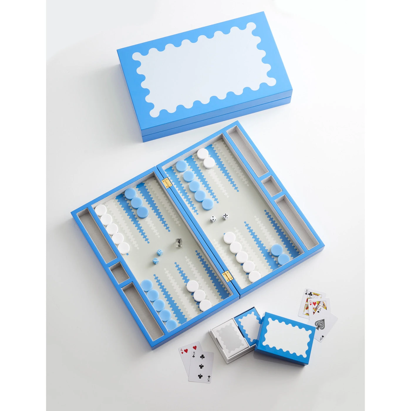 Elevate your evening entertainment with our Ripple Lacquer Card Set. Store your decks in a high-gloss lacquer box featuring our two-toned, wavy-edged design and score style points before you even start to play. A chic cocktail table accent on its own, each box houses two standard playing card decks.