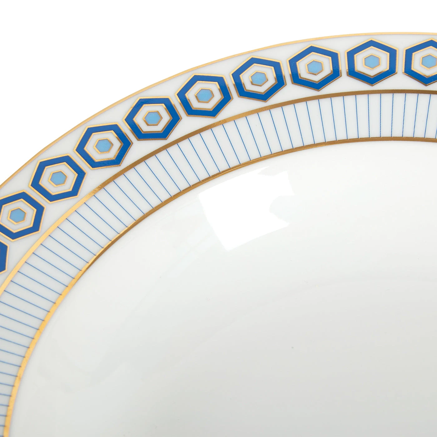 Our signature hexagon pattern in cool blue hues with sparkly gold accents. Formal but fresh, Newport Soup Bowls are perfect for everyday, but polished enough to impress at your poshest dinner party.