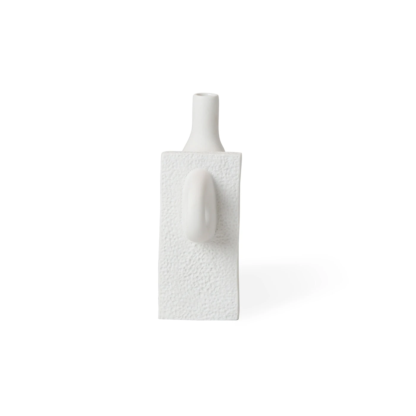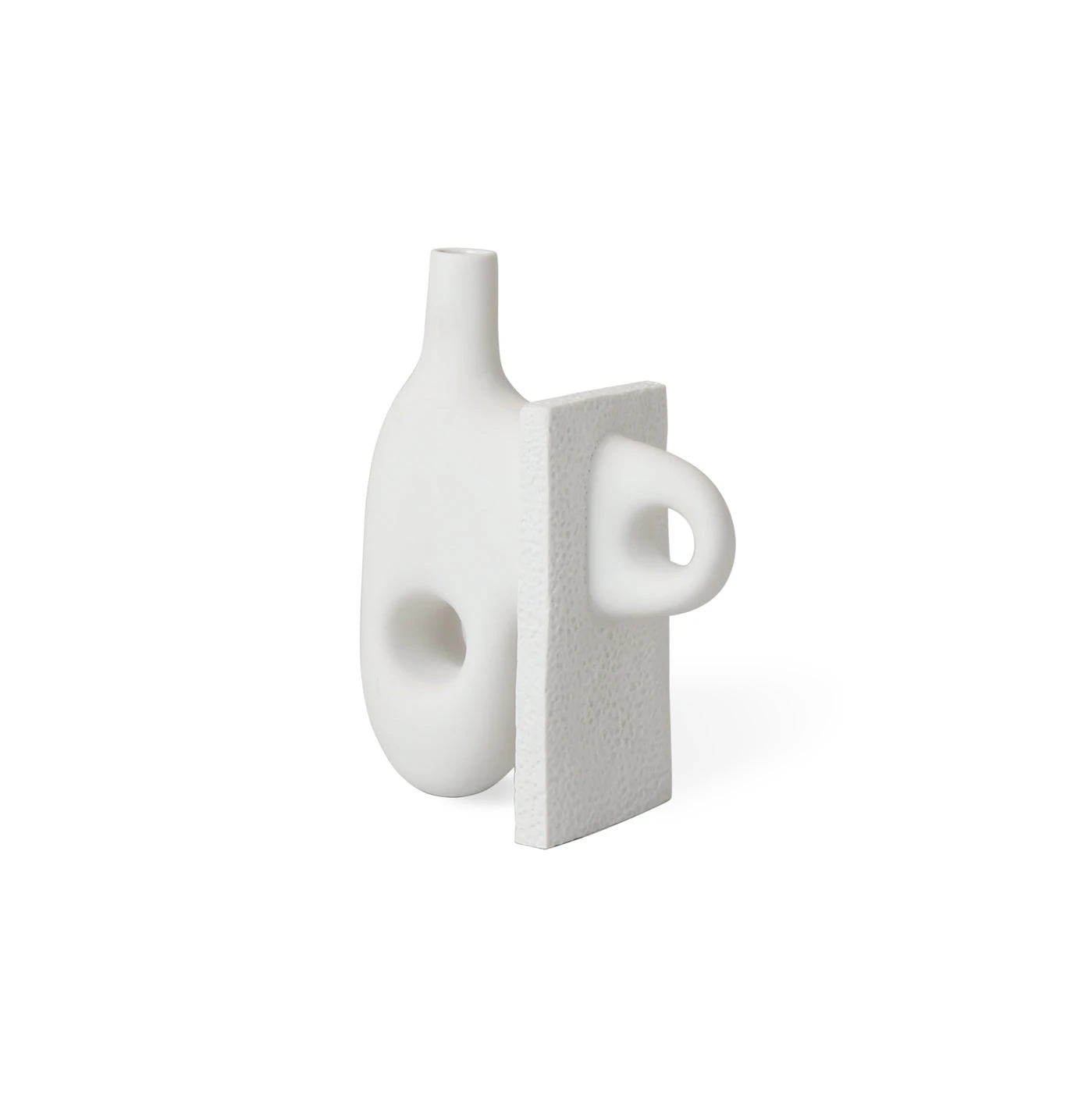 Functional sculptures featuring smooth organic forms intersecting with rough-textured blocks of porcelain. The perfect place for colorful buds to pop, they also make a strong statement without.
