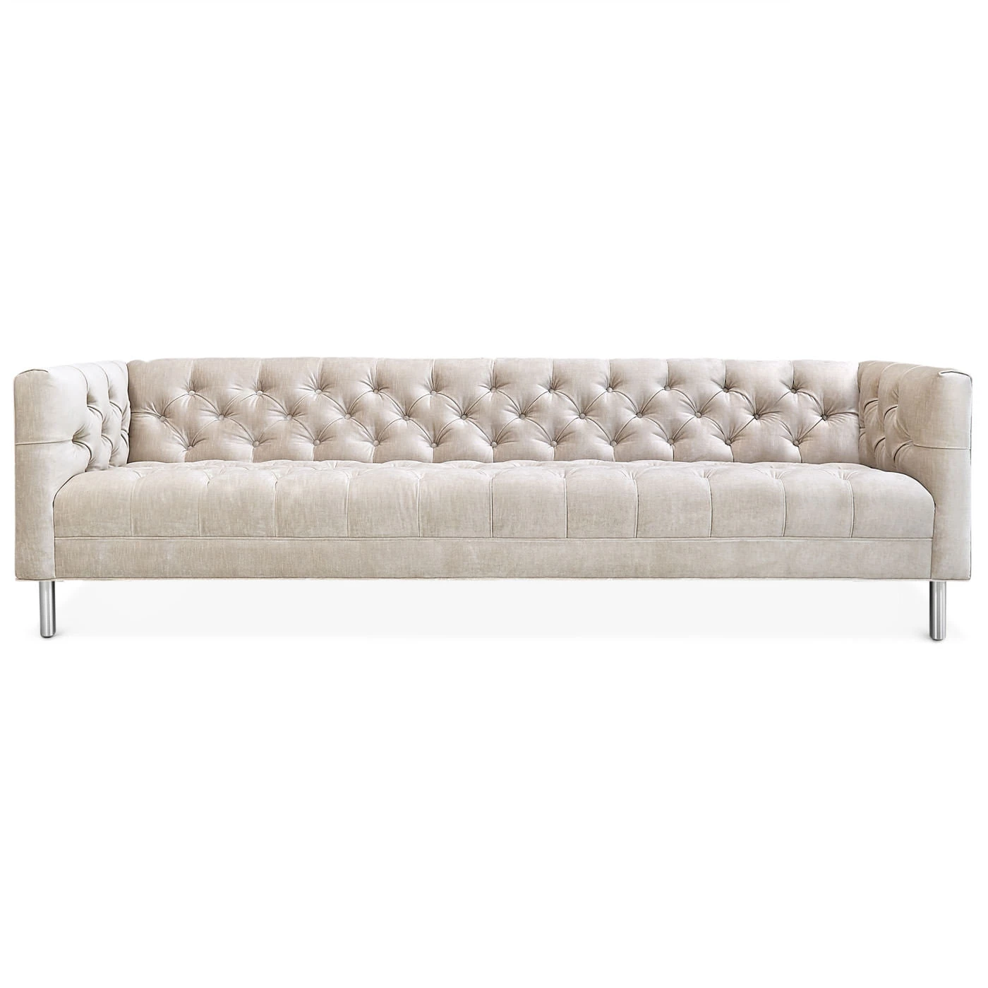 Our twist on the classic Chesterfield, the Baxter Grand Sofa offers clean lines with a plush presence. This très luxe sofa oozes minimalist glamour. A flat back and all-over button tufting make this a comfortable, chic addition to any modern library or study.