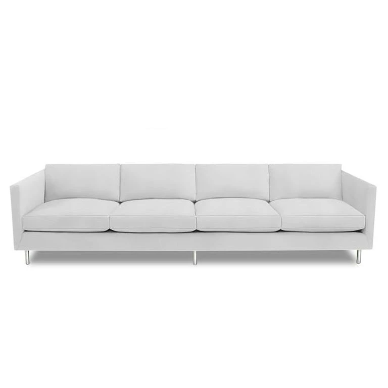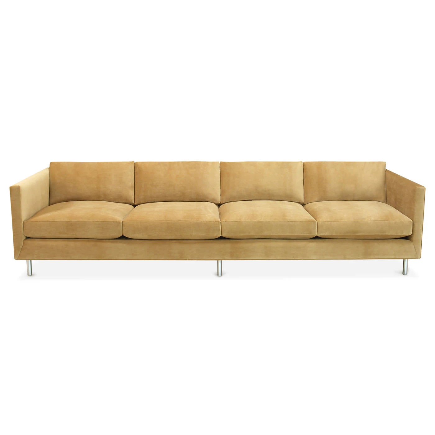 Our extra-wide four-seater Topanga Sofa is a sizable alternative to a sectional; perfect if you’re going for a more tailored look in your graciously-proportioned living room. Stainless steel legs offset mitered front corners for a look that’s as sharply tailored as your favorite suit. Loose, oversized down cushions keep things from getting stuffy.