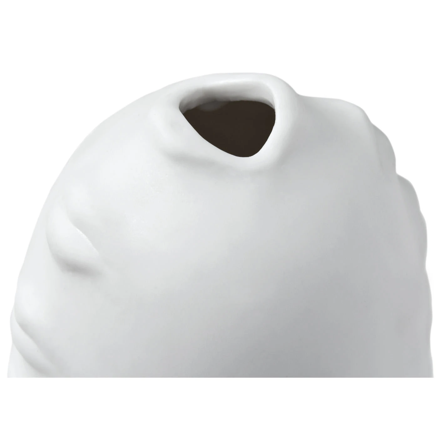 An expressive line-up of moody mouths run down the side of a vessel crafted from unglazed porcelain. A kiss of cool for your table, mantel, or shelf.