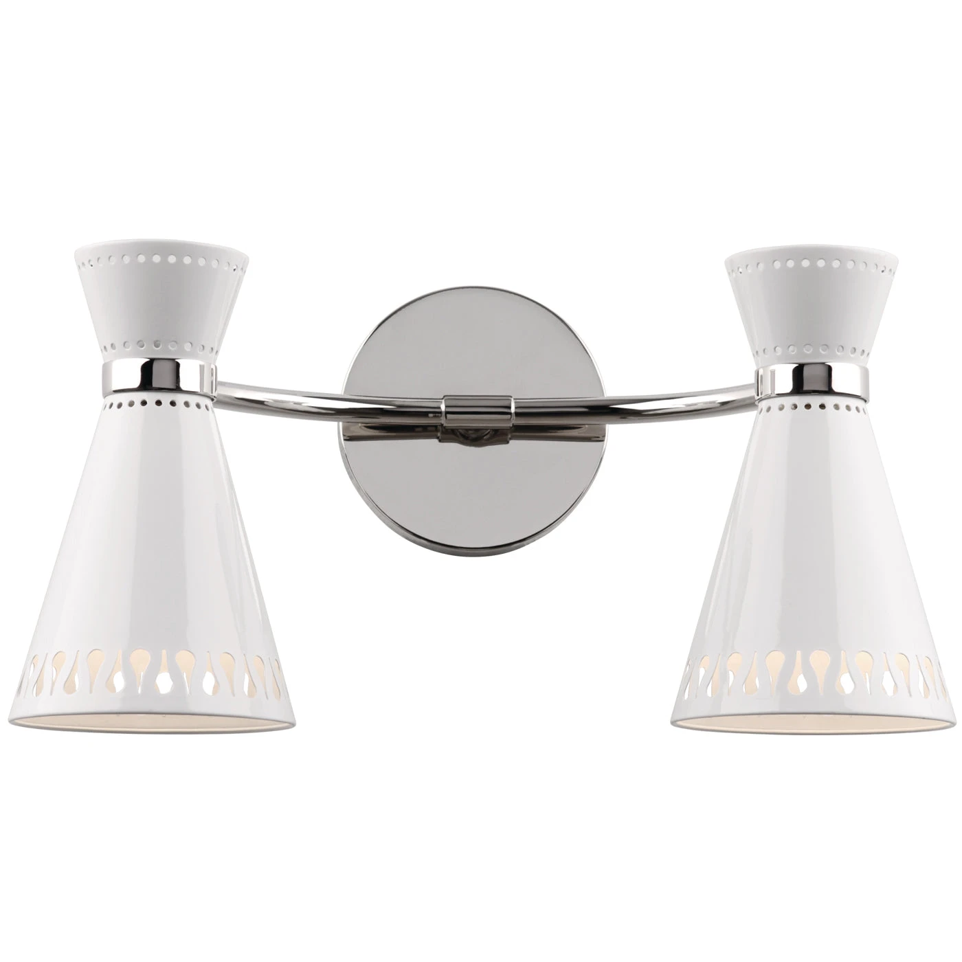 Our Havana Double Sconce features two individually adjustable shades with perforated teardrop patterns. The wall plate is finished with smooth, polished nickel.
